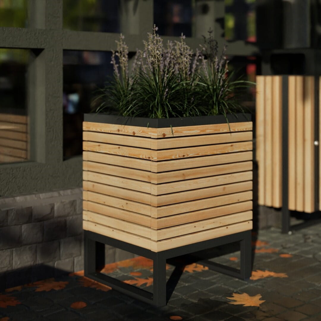 This square plant case from our Amager line is made of the highest quality larch wood, combined with powder-coated steel elements, the colour of which can be chosen according to your individual preferences. Our plant cases are perfect for decorating public spaces, park gardens, terraces as well as restaurant gardens. They are an ideal solution for creating architecturally remarkable garden arrangements, adding a unique look to your plants. The Amager line also includes a rectangular version of the case.