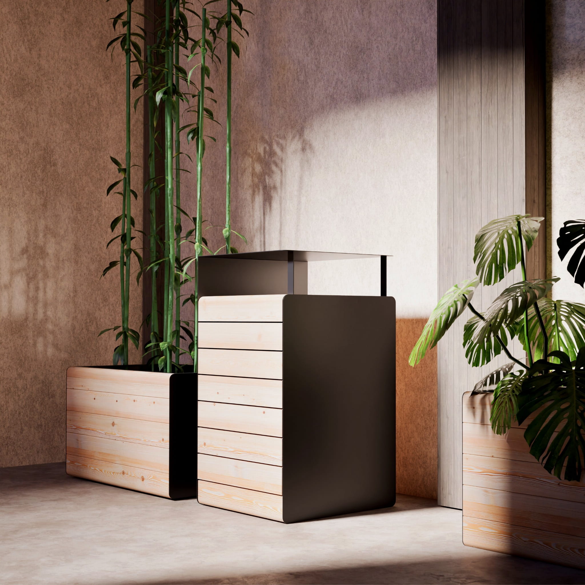 This waste bin from our Frederiksberg line is a stylish and functional element of small urban architecture furniture created for everyday use. Its accessibility is a great encouragement to keep the environment clean, while its Scandinavian-inspired design will blend in perfectly with any urban space. The combination of high-quality larch wood and powder-coated steel elements ensures durability and long-term use. This waste bin will make a perfect addition to other elements of small urban architecture from our line.