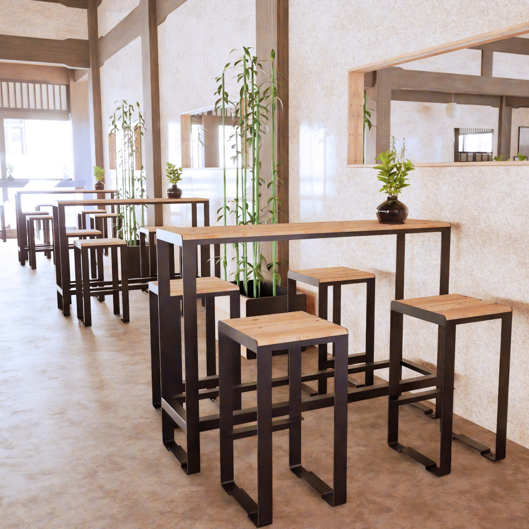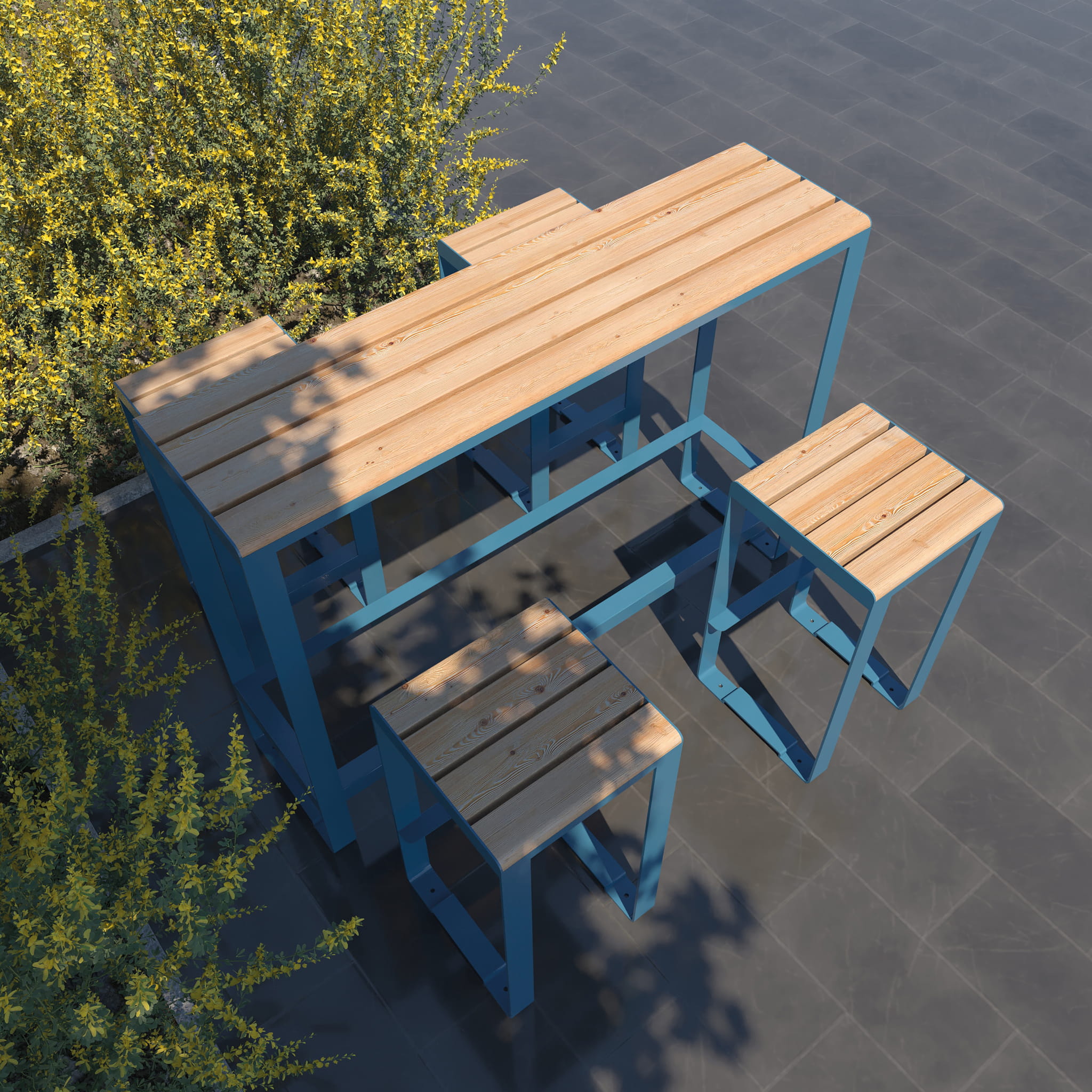 This minimalistic bar set from our Frederiksberg line is a stylish solution for restaurant and bar gardens, designed to ensure comfort of its users. Made of the highest quality larch wood and powder-coated steel, it provides durability as well as weather resistance. This bar set has been created inspired by Scandinavian architecture, combining functionality and high-quality finish with innovative, eye-catching design. The bar stools feature foot rests, which provide its users with both safety and comfort.