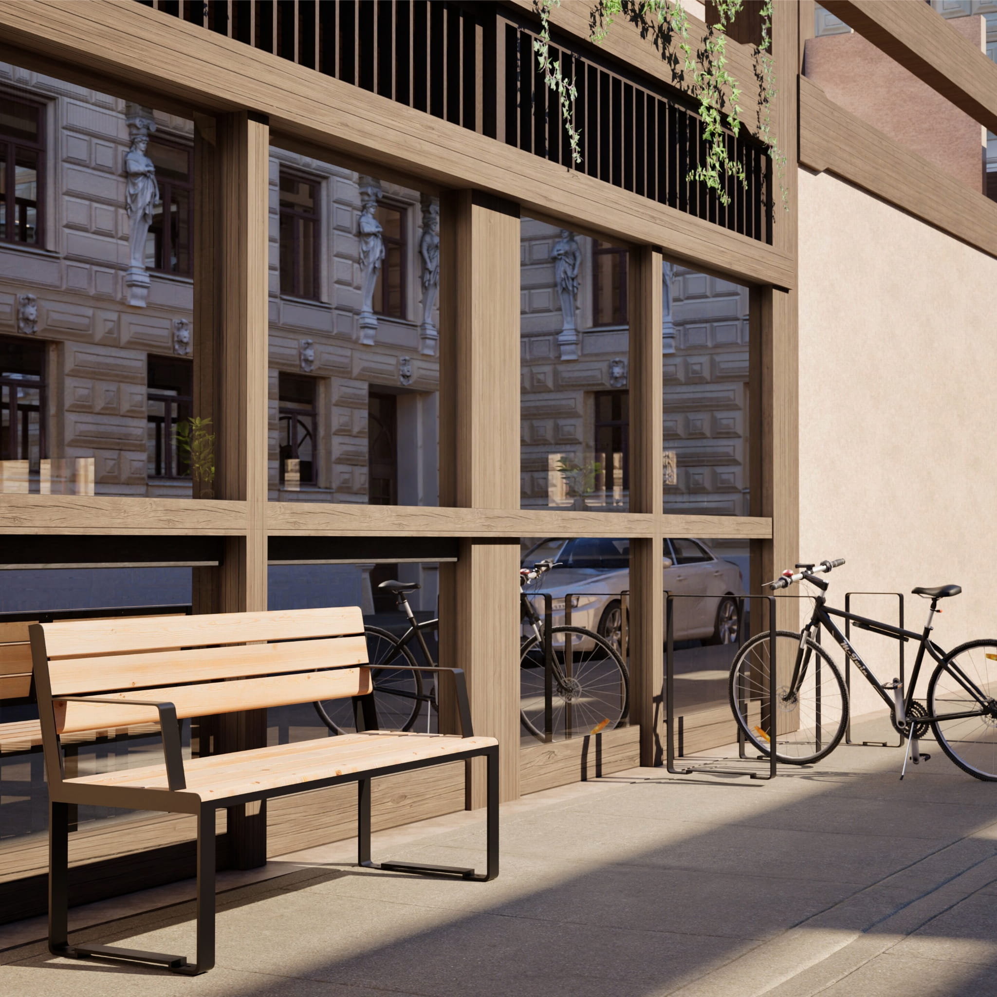 Our Frederiksberg line is distinguishable by its minimalistic yet unique design as well as functionality inspired by Scandinavian architecture. This three-person bench with armrest makes a perfectly suitable addition to diverse urban spaces such as parks, playgrounds, boulevards and recreational areas. Made of a combination of the highest quality larch wood and powder coated steel, it ensures stability, weather resistance and long years of use. This bench type is also available in a four-person version.