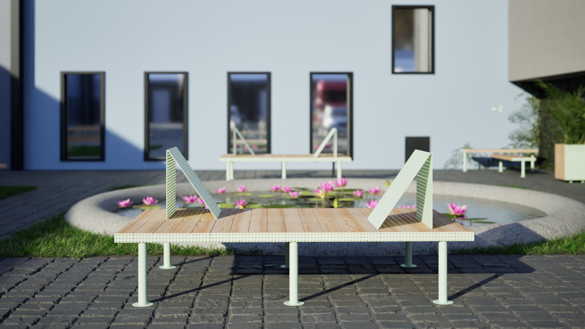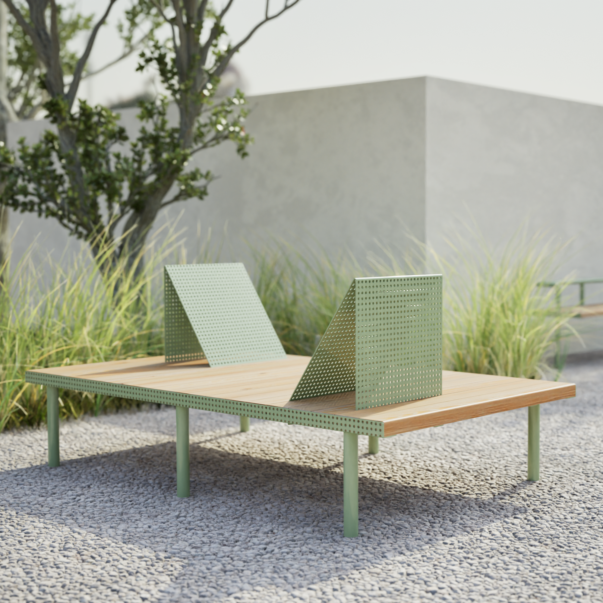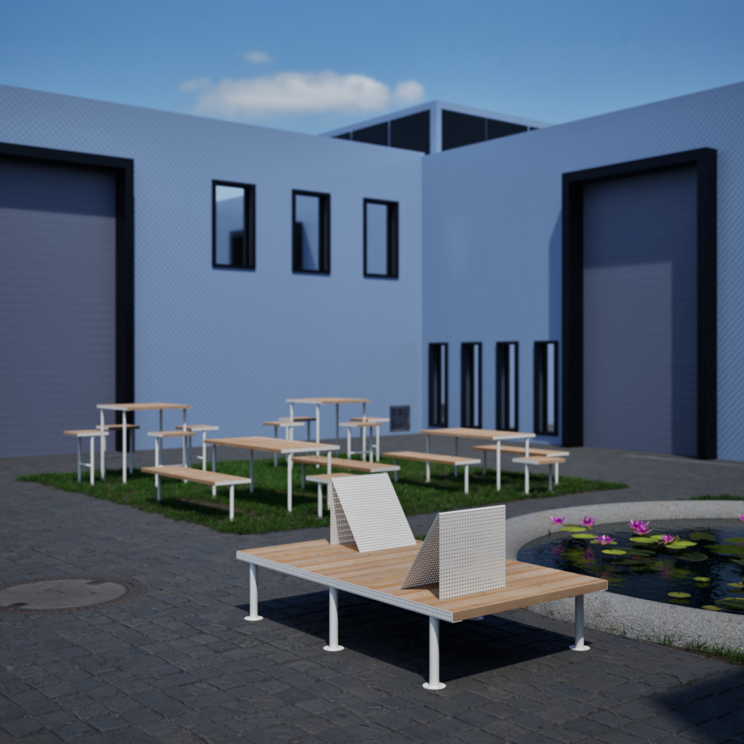With its sharp-shaped angles, this minimalistic yet unique two-person lounge bench from our Holmen line is a real eye-catcher, encouraging passers-by to spend time outdoors. Made of a combination of powder-coated steel and larch wood, it provides stability and weather resistance. Inspired by Scandinavian design, it combines aesthetic value with high quality finish. Together with other elements of our Holmen line, this bench can be part of a functional furniture set for various types of urban spaces.