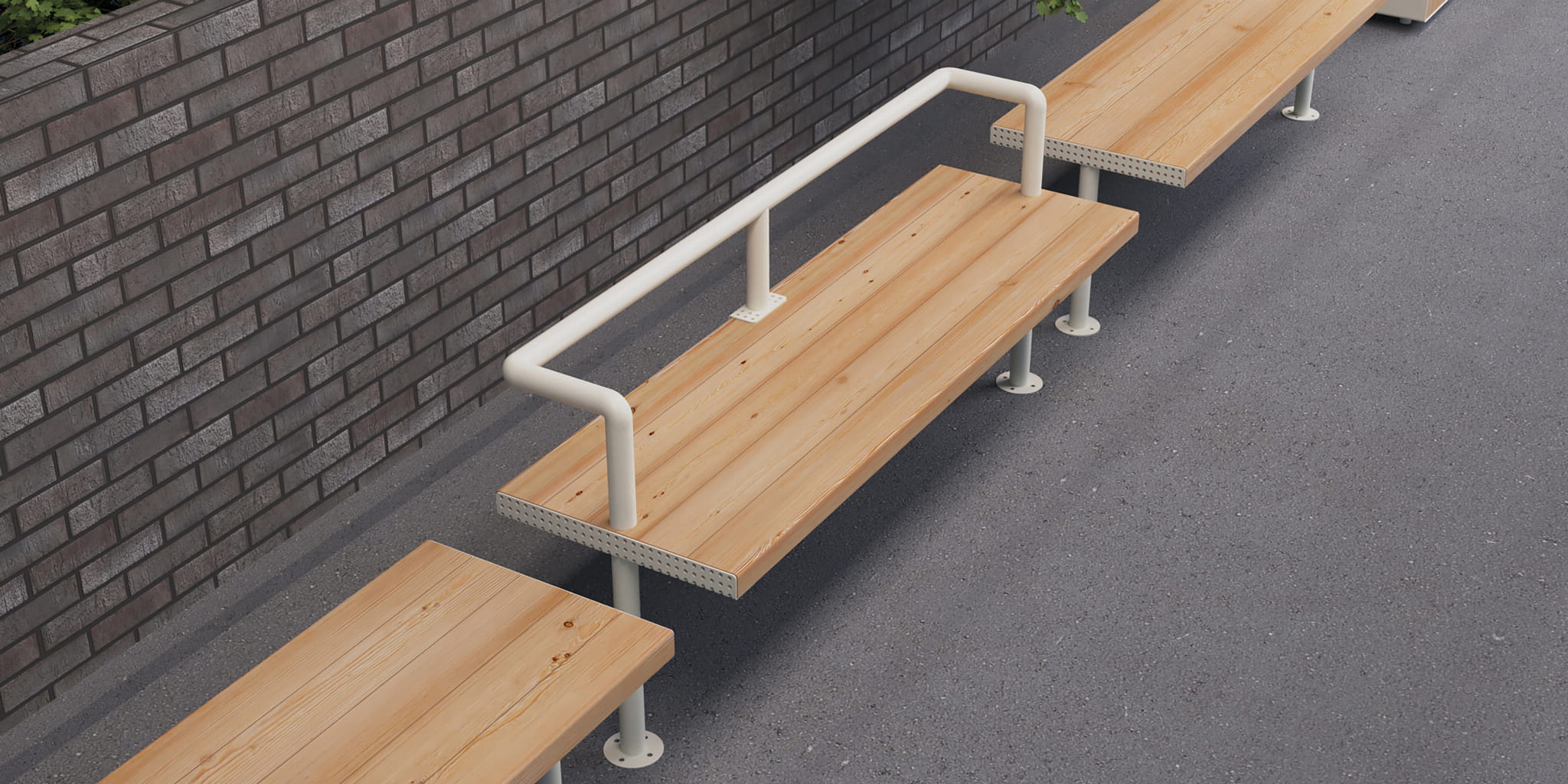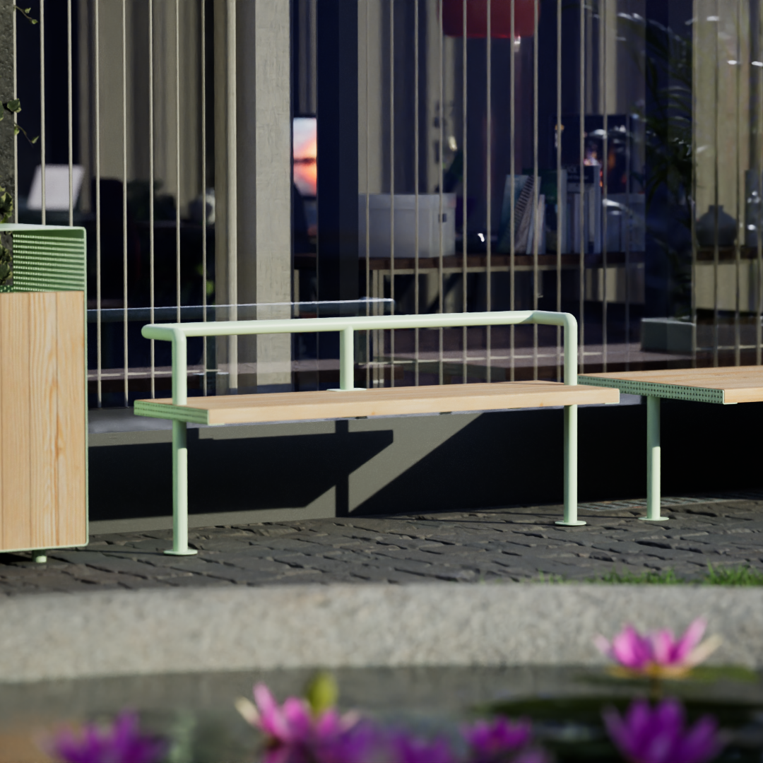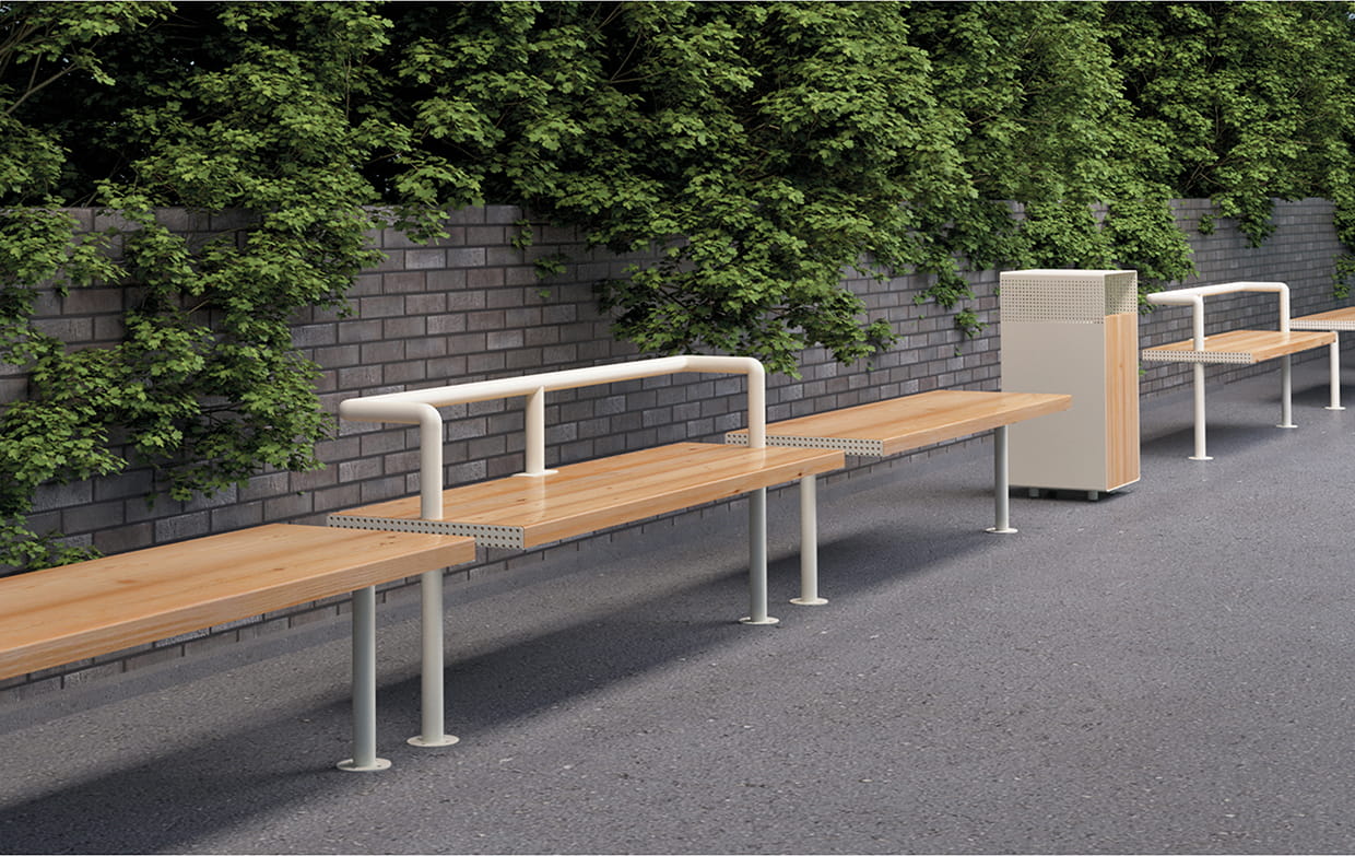 This minimalistic yet unique three-person lounge bench from our Holmen line will make a perfect addition to any urban space. Powder coated steel base of the bench provides stability as well as weather resistance, while its comfortable seat made of larch wood will encourage passers-by to relax in the open air. High quality finish of the bench ensures long years of use. When combined with other elements of our line, it can be used to create a functional set ideal for many types of urban spaces.