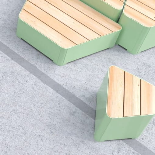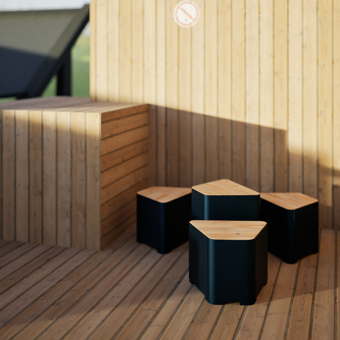 Our Kødbyen line is a combination of Scandinavian-inspired minimalistic yet eye-catching designs with functionality and high quality finish. Made of highest quality larch wood and powder-coated steel, this uniquely shaped stool provides stability and weather resistance and ensures long-term use. When combined with other elements of our Kødbyen line, it will make a perfect enhancement to diverse urban spaces such as parks, restaurant and bar gardens as well as recreational areas and boulevards.
