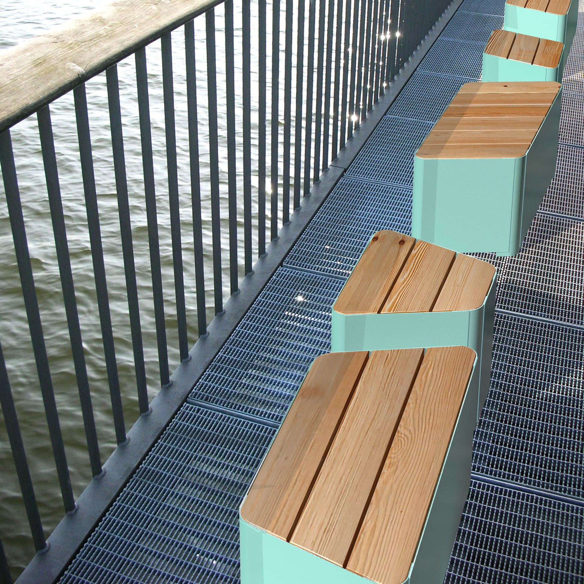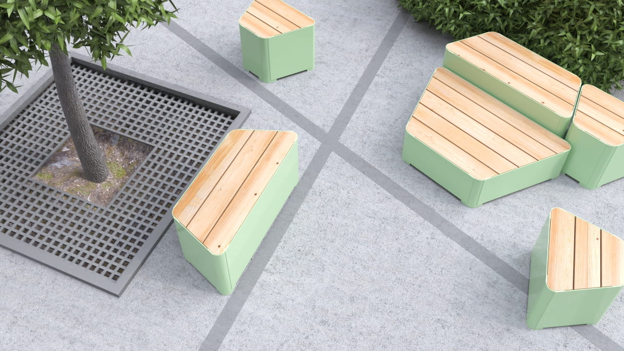 With its unique shape and unconventional design inspired by the Scandinavian architecture, this bench from our Kødbyen line will undoubtedly redefine all kinds of urban areas such as parks and squares. It makes a perfect addition to urban spaces and will encourage passers-by to use it. Stable and durable, the backless bench combines powder-coated steel base with a seat made of larch wood, ensuring weather resistance as well as long-term use. The Kødbyen line also includes other city bench shapes and sizes.