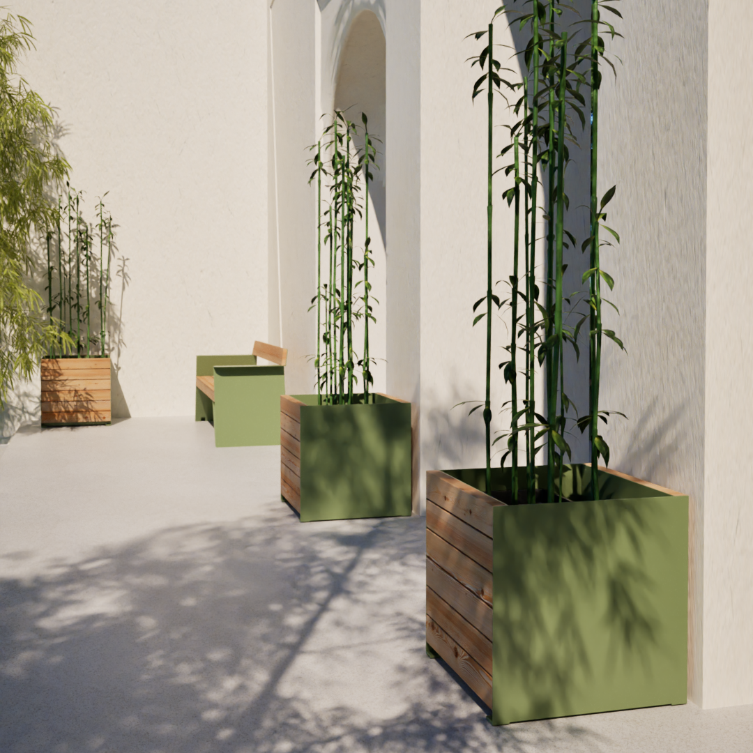 This square-shaped plant case from our Nyboder line is made of the highest quality larch wood, combined with powder-coated steel elements, the colour of which can be chosen according to your individual preferences. Our plant cases are perfect for decorating public spaces, park gardens, terraces as well as restaurant gardens. They are an ideal solution for creating architecturally remarkable garden arrangements, adding a unique look to your plants. The Nyboder line also includes a rectangular version of the case.