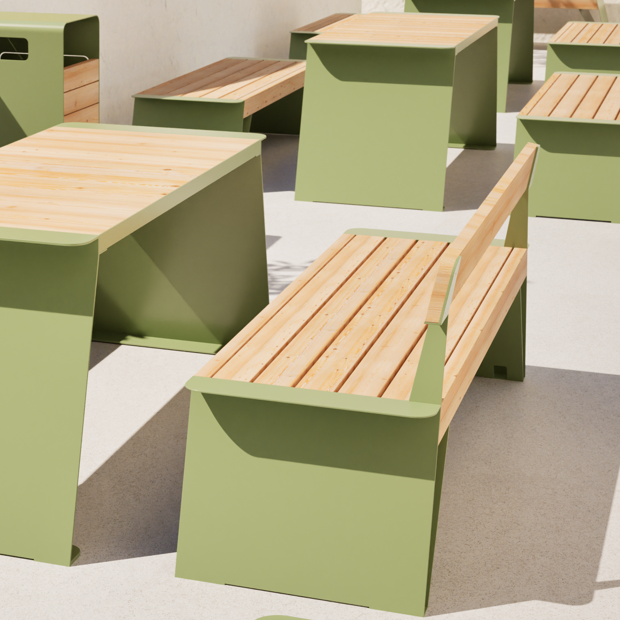 The minimalistic yet unique design of this 4-person bench from our Nyboder line combined with its durability and functionality will redefine various types of urban spaces including parks, playgrounds and recreational areas. Its backrest and seat made of high quality larch wood ensures comfort of use as well as stability. The base of the bench is made of powder-coated steel, which provides weather resistance and long-term use. The Nyboder line also includes other bench types and sizes.