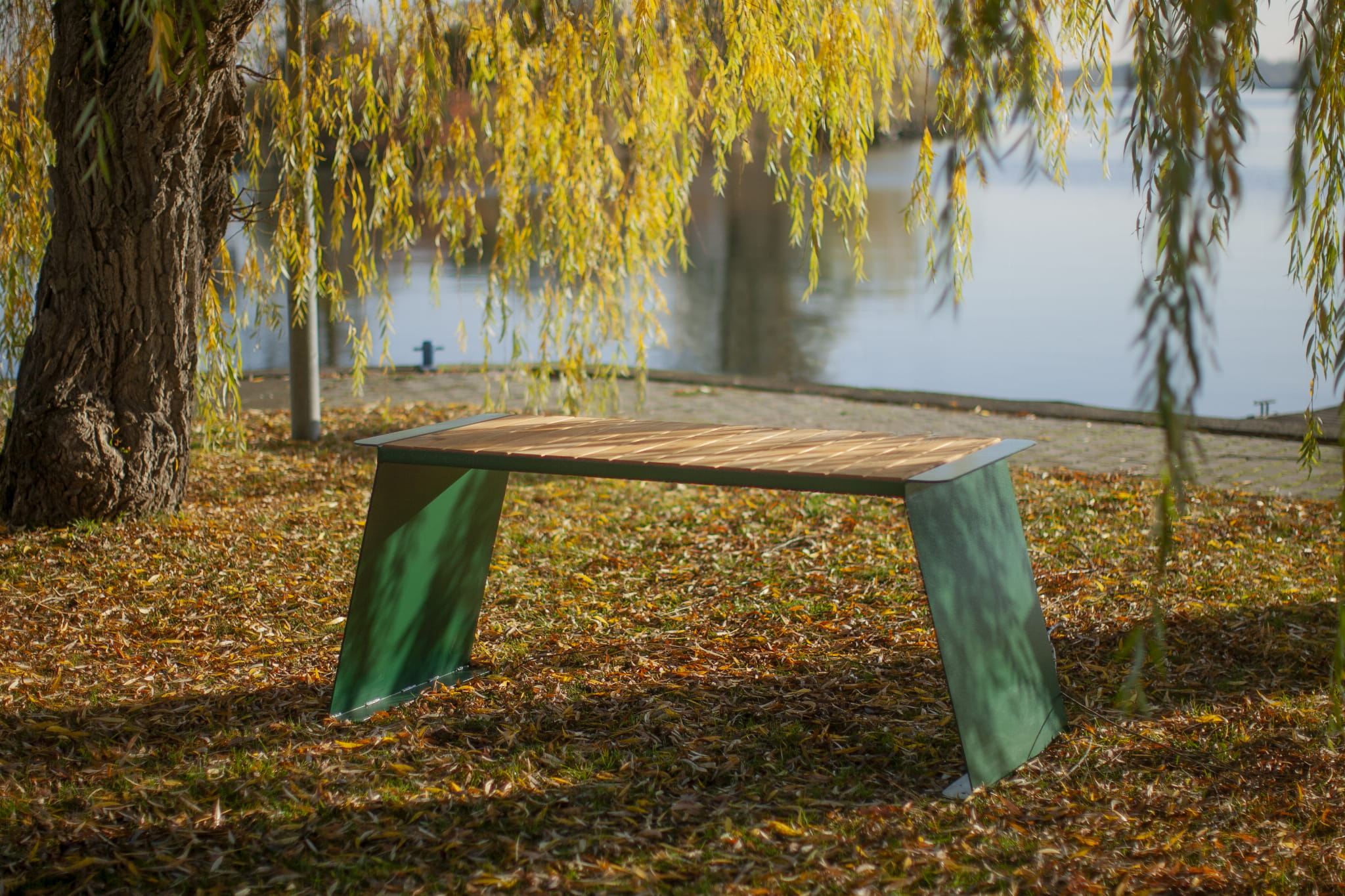 This table for six to eight people from our Nyboder line is a functional solution for areas such as parks or spaces in front of buildings. It is perfectly suitable for various types of social settings, especially when combined with other elements of small architecture furniture from our line, such as chairs and benches. Inspired by the Scandinavian design, this table combines the highest quality larch wood and steel elements, which ensure stability and durability. The table is available in two sizes.