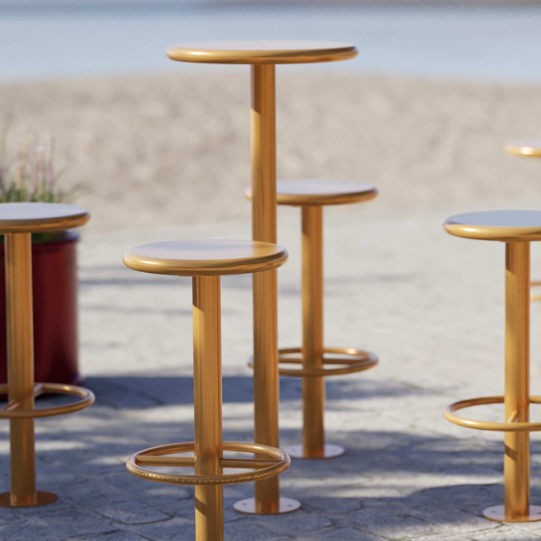 Created inspired by Scandinavian urban architecture, this table combines functionality and durability with a sophisticated, minimalistic design. The round lower part of the stool, designed to be used as a foot rest, provides its users with safety and comfort. When combined with our Sydhavn bar stool, this table creates a coherent set of outdoor furniture perfectly suitable for use in restaurant or café gardens. Made of the highest quality powder-coated steel, it ensures stability and weather resistance.