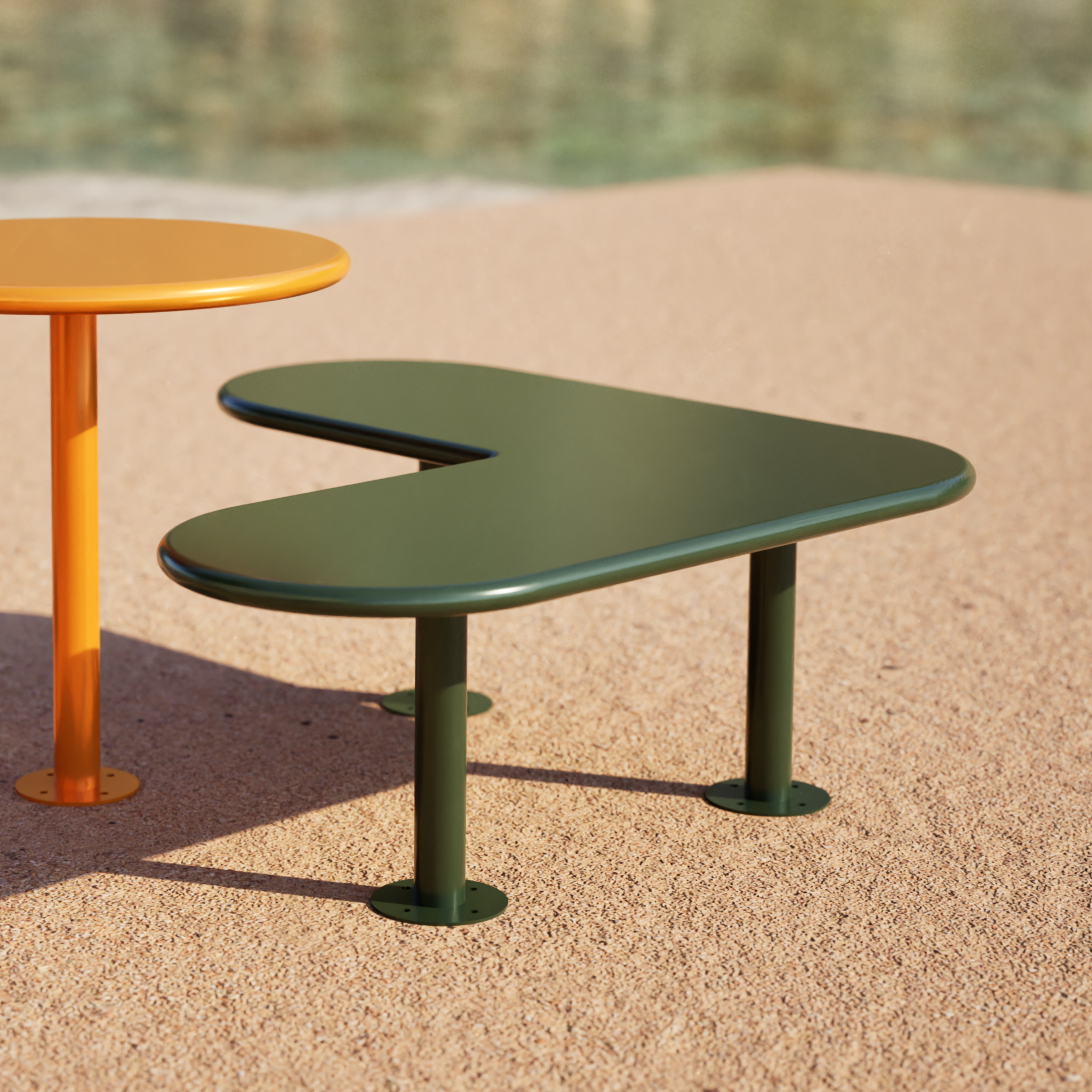 At Københagen, we combine intensive colours with unconventional, unique shapes in our projects. With such an approach, we have created this L-shaped backless bench, which fits perfectly into numerous urban spaces such as city squares, parks as well as boulevards. It is made of high quality powder-coated steel, which ensures stability and weather resistance. Our Sydhavn line also includes five different city bench shapes which, when combined, can be used to create a remarkable arrangement for places such as shopping centres and sports facilities.
