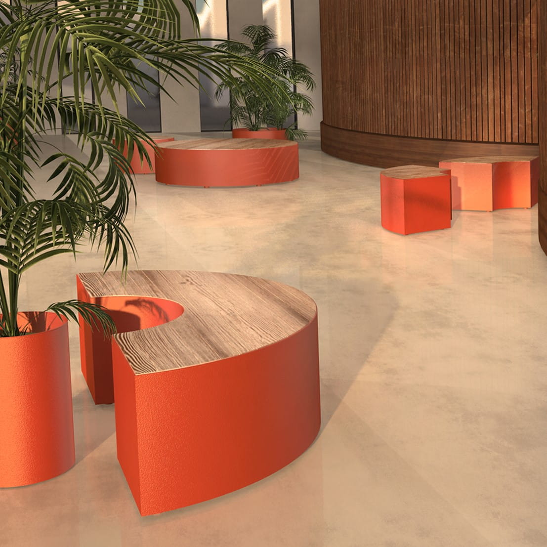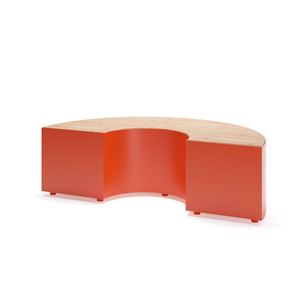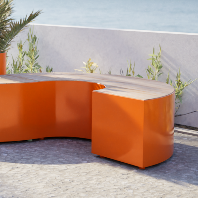 The crescent-shaped bench from our VALBY line belongs to one of the most unique urban furniture designs offered by Københagen. This minimalistic bench for public spaces, although of an unconventional form, can be easily combined with our rectangular or square-shaped pieces and, for an even more impressive effect, with one of our rounded city benches. The outstanding design of this street bench will undoubtedly make a perfect addition to any common space, while its high-quality finish ensures stability along with durability.