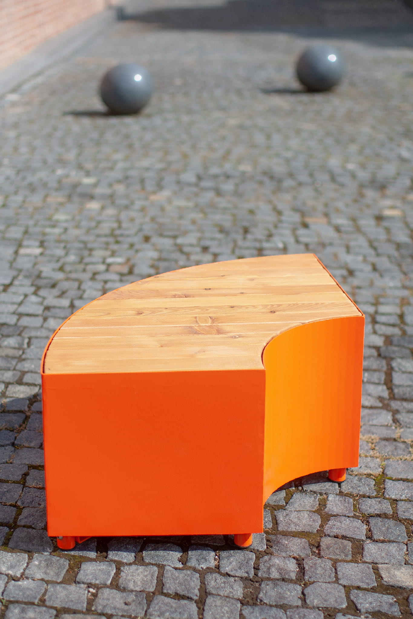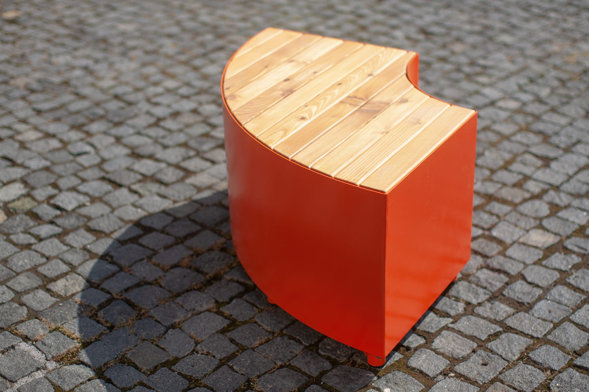 This minimalistic, quarter-shaped bench is an innovative and remarkable addition to our VALBY bench line. Inspired by the Scandinavian design, the high quality of the wood and steel used ensures high stability and long-term use. All of our benches can be combined with each other or with other pieces from the VALBY line. By adding it to one of our rectangular, square or semicircular benches, a number of unique arrangements for urban space can be created, providing for many design possibilities.
