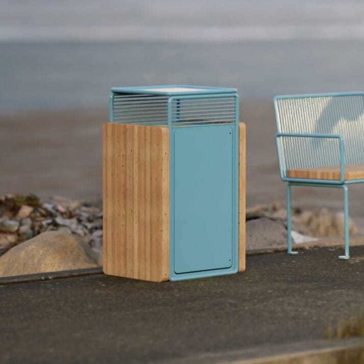 This minimalistic waste bin from our Østerbro line is both a stylish and functional element of small architecture furniture created for everyday use. Its practicality and accessibility is a great encouragement to keep the environment tidy and clean and its Scandinavian-inspired design will blend in perfectly with any urban space. The combination of high-quality larch wood and powder-coated steel elements ensure durability as well as long-term use. This waste bin will make a perfect addition to other elements of small urban architecture from our Østerbro line.